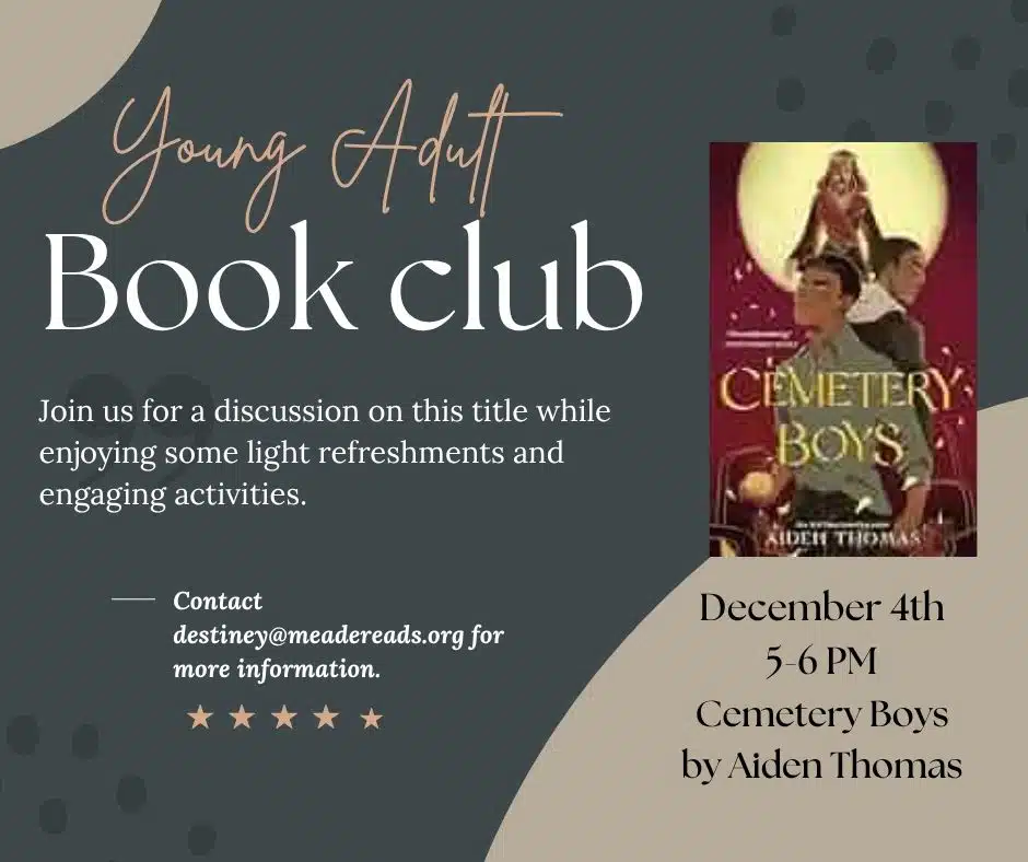 Join for a discussion of Cemetery Boys.Open to all 7th- to 12th-graders.*Subject to change at any time.*