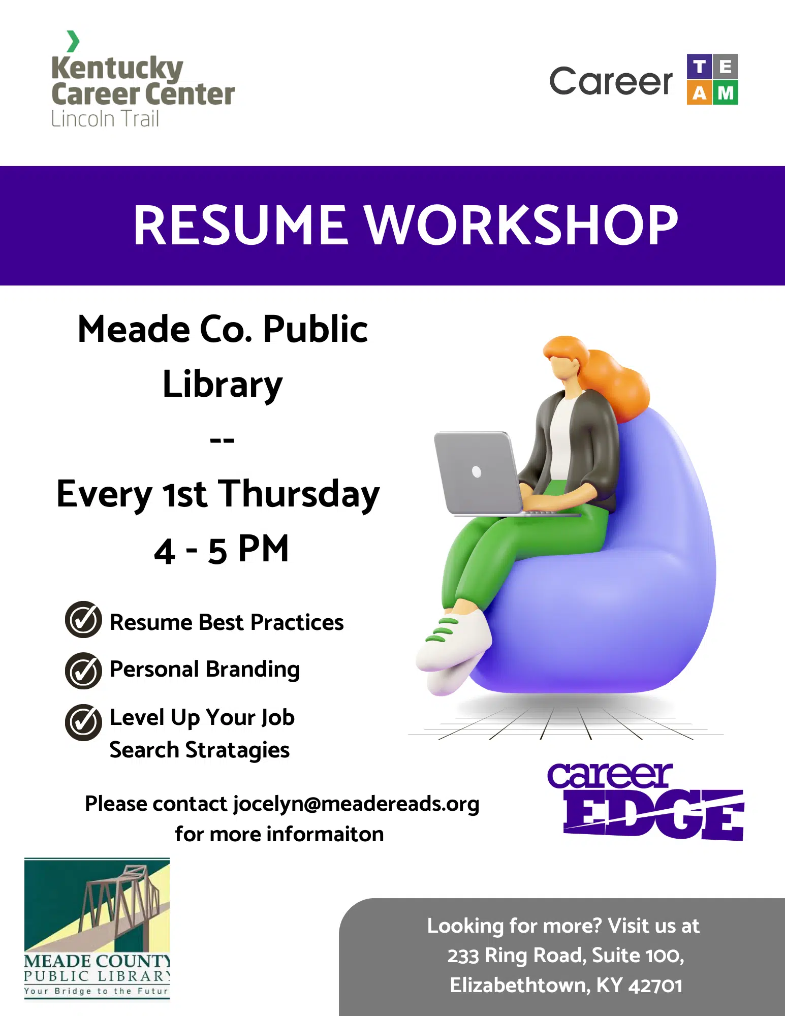 Need assistance with creating a resume, finding a job, or just updating your old resume? The Kentucky Career Center will be on site to provide assistance. Find Justin near the…